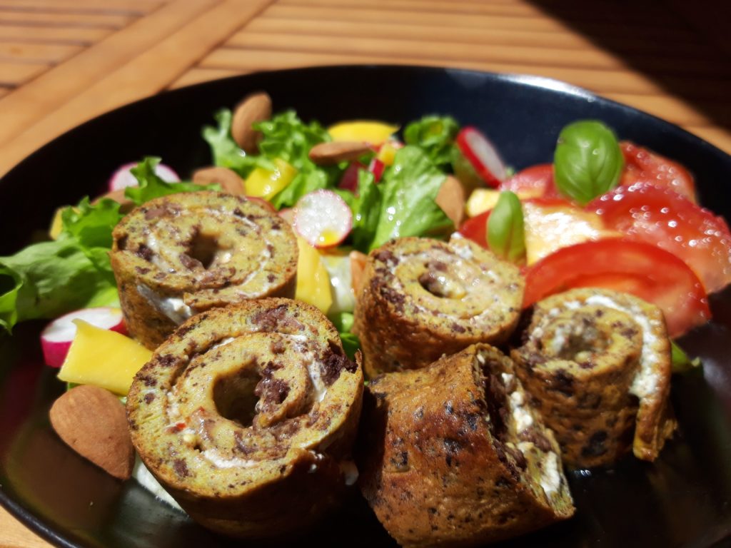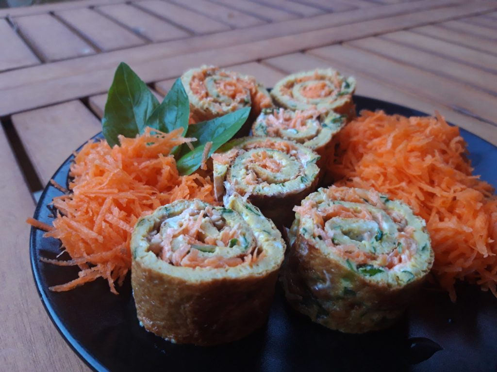 Cette omelette roulée se déguste très bien fraîche en entrée avec une bonne salade de carottes râpées. Vous pouvez aussi la servir à l’apéro en piquant les rondelles avec des pics. Et pour plus de gourmandise vous pouvez aussi rouler l’omelette dans des graines de sésame par exemple. Je vous laisse à votre créativité !